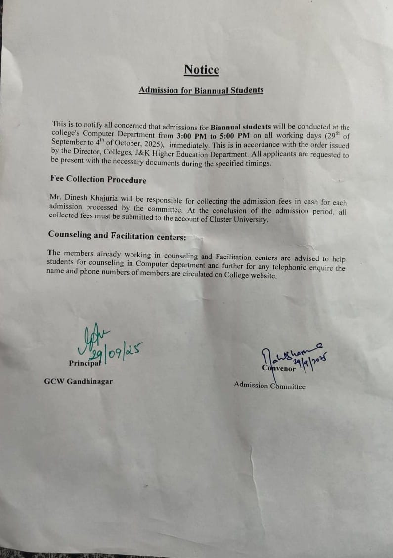 - Notice regarding to Login to the Cluster University of Jammu Portal to verify.