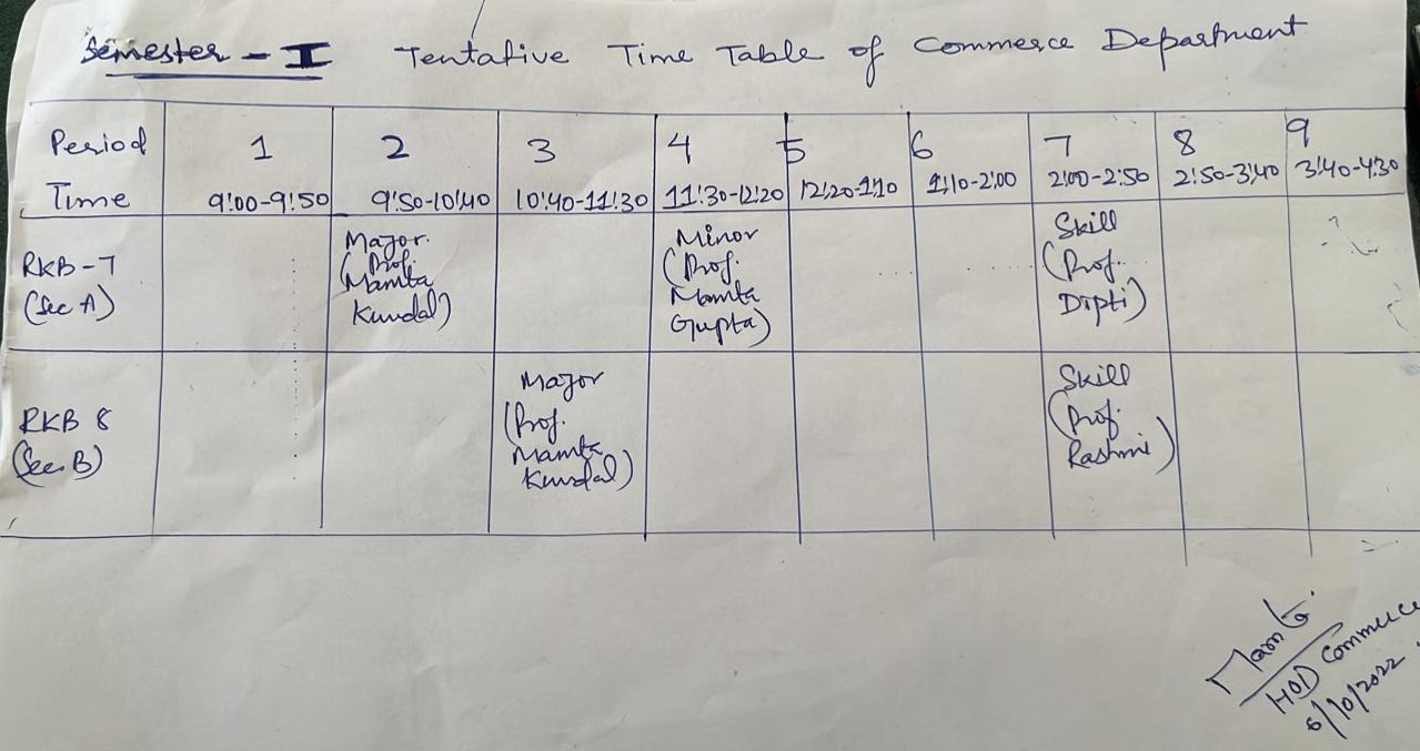 Time Table Semester 1st Commerce Subject (Major and Minor ) Read More